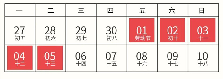 勞動節休息時間如下:
